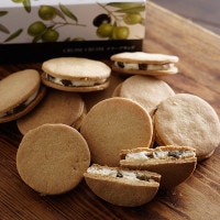 さっくりしたクッキーに濃厚なバタークリームとオリーブグラッセを挟みました。