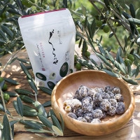 オリーブグラッセはオリーブの実を種ぬきにして、糖蜜で長時間熟成乾燥させた独特の甘さと香りがミックスされた、東洋オリーブうまれのドライフルーツです。